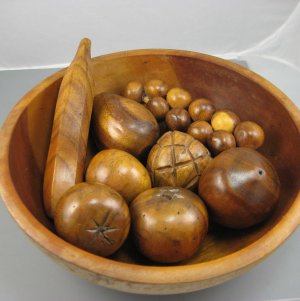 I belong to a community called “Ecrater Stores Network“. One of my fellow store owners is “Paul Sirocco” who owns “Sirocco’s Curios“. Earlier this week, he show cased an item on his blog that was absolutely awesome and I wanted to share it with you. It is called the “Monkey Pod Wooden Fruit in a Bowl“.